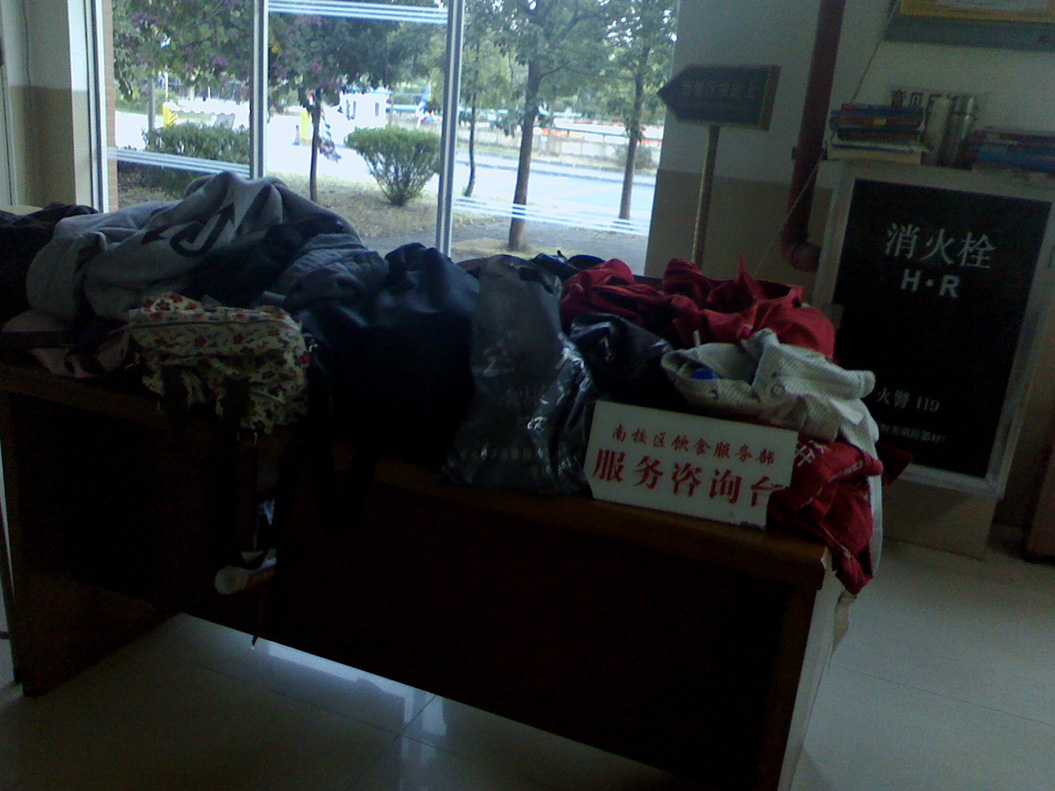 赶到广大后,在一名小谷围便衣民警的陪同下,失主们前去服务中心的办公室认领。终于,物归原主!背包都找回来了。