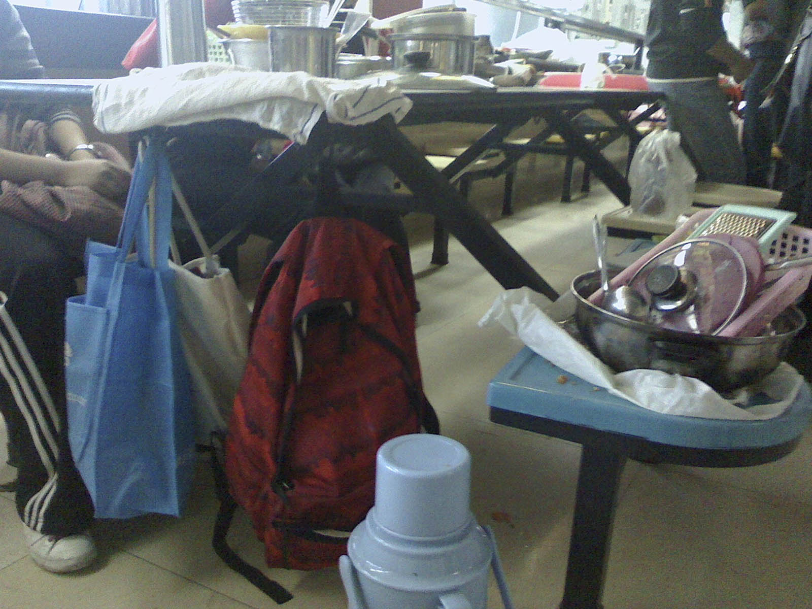 经贸学院“美味关系”队的沈同学说,当她们一发现背包不见,意识到可能被窃,就已第一时间打电话通知保卫处并报警。沈同学自己也是失主之一。她说:“不见的五个背包中,三个黑色两个棕色。当时背包都搁在我们队伍后边的餐桌或椅子上。当煮完第三道菜,我们大家都走到评委席前去摆盘,回来就发现我们的包包不见了。我们推测,包包是在16:15到16:30这段时间内被偷走了。”包里有证件,钱包和钥匙。钱不多,被偷走就算了,可是证件对我们非常重要。”