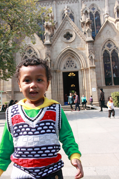 教堂边玩耍的孩子,犹如落入凡间的天使