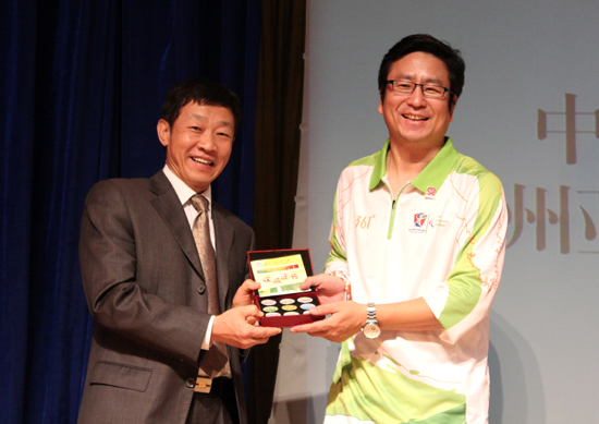 培训之后,许国彬和志愿者代表等分别向白岩松等赠送了广东外语外贸大学志愿服务荣誉徽章和亚运简报等纪念品。