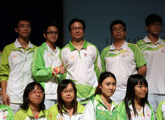 本网讯 12月5日下午,广州外事亚残运会专项志愿者培训大会在我校六教报告厅举行。中央电视台著名主持人、广州亚运残疾人运动会志愿者形象大使白岩松作为神秘嘉宾出席培训会。出席培训会的嘉宾还有广州2010年亚洲残疾人运动会志愿者培训顾问赵济华、韩润峰,广东省残联指导老师林达。我校党委副书记许国彬、校团委书记刘志军等出席本次培训会。