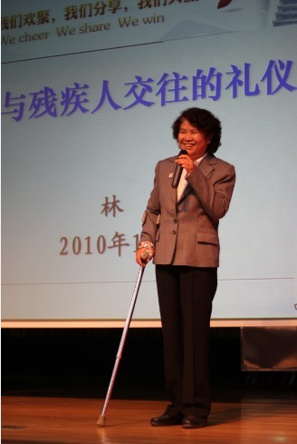 林达做了名为“与残疾人交往的礼仪”的专题演讲