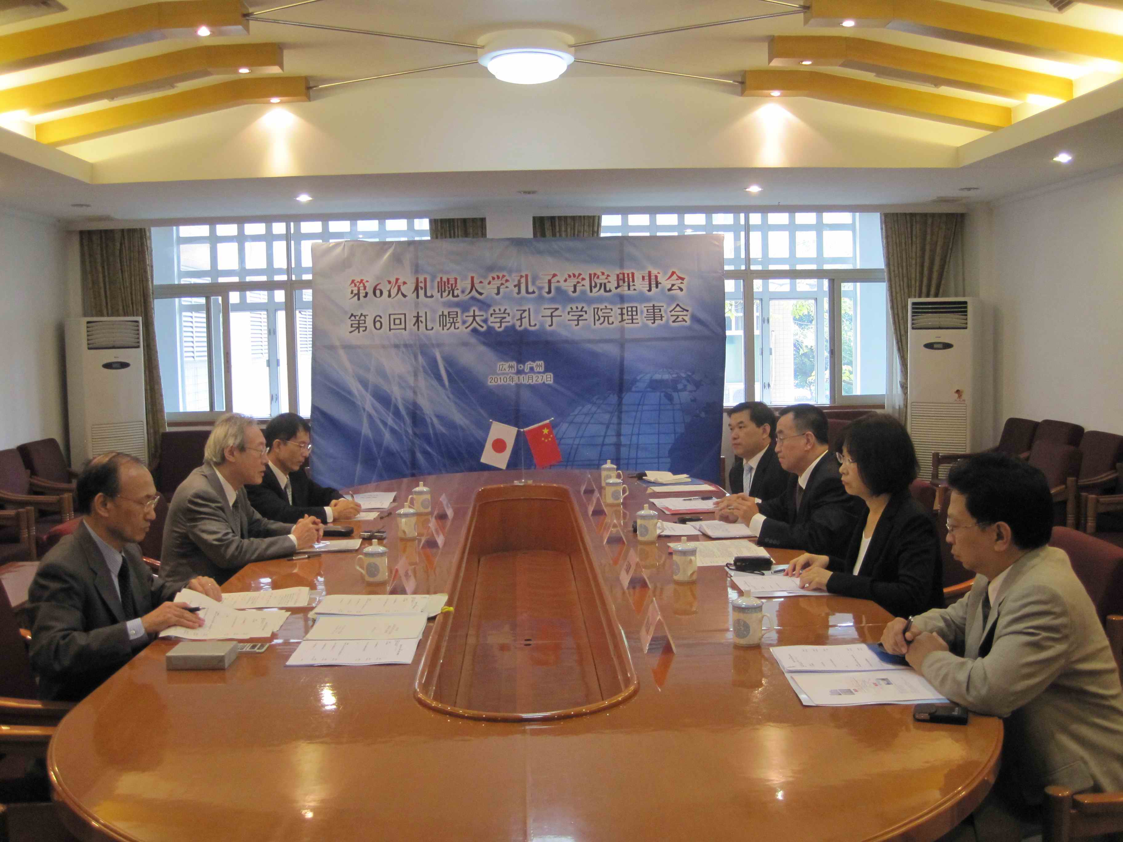 本网讯 11月27日,第6次札幌大学孔子学院理事会会议在我校北校区第三会议室召开。参加理事会的日方代表有日本札幌大学理事长兼孔子学院理事长佐藤俊夫、孔子学院院长张伟雄、孔子学院事务局长加清真二一,中方代表有我校副校长兼孔子学院副理事长顾也力、国际交流处兼孔子学院理事焦方太、孔子学院中方副院长王凤兰、候任中方副院长刘金举等。