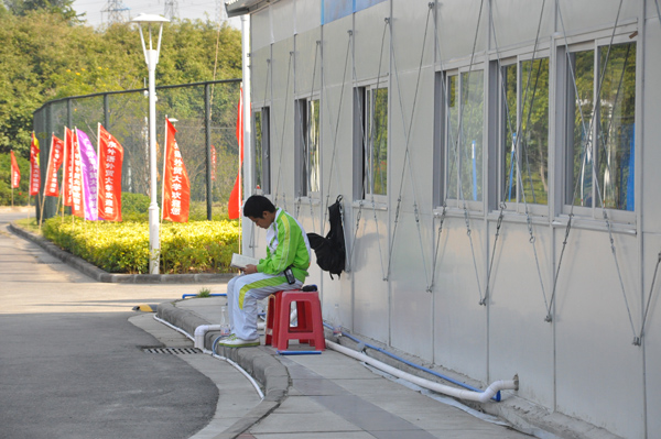 不得不提的是,场馆的交通业务口有一位名叫谭金言的志愿者,她不远千里从兰州交通大学来到广外,只为能为亚运贡献一份绵力。这次参与亚运的来回车费、住宿费、生活费等费用全是她自己出的。谭金言在广外旁边的贝岗村租了一个房间,亚运期间就一个人住在里面。她告诉记者说:“(自己一个人住在贝岗)会有点害怕。每天下班后回到房间我就会把门反锁上,在里面做作业。”谭金言这次是向学校请假了十几天时间过来广州的,她的学习任务很重,亚运结束之后她就要马上回去学校参加考试。