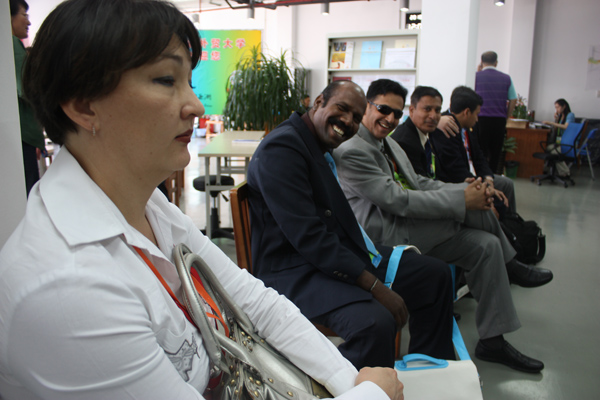 "合粉"与仲校合影很兴奋(陈洁冰/图)