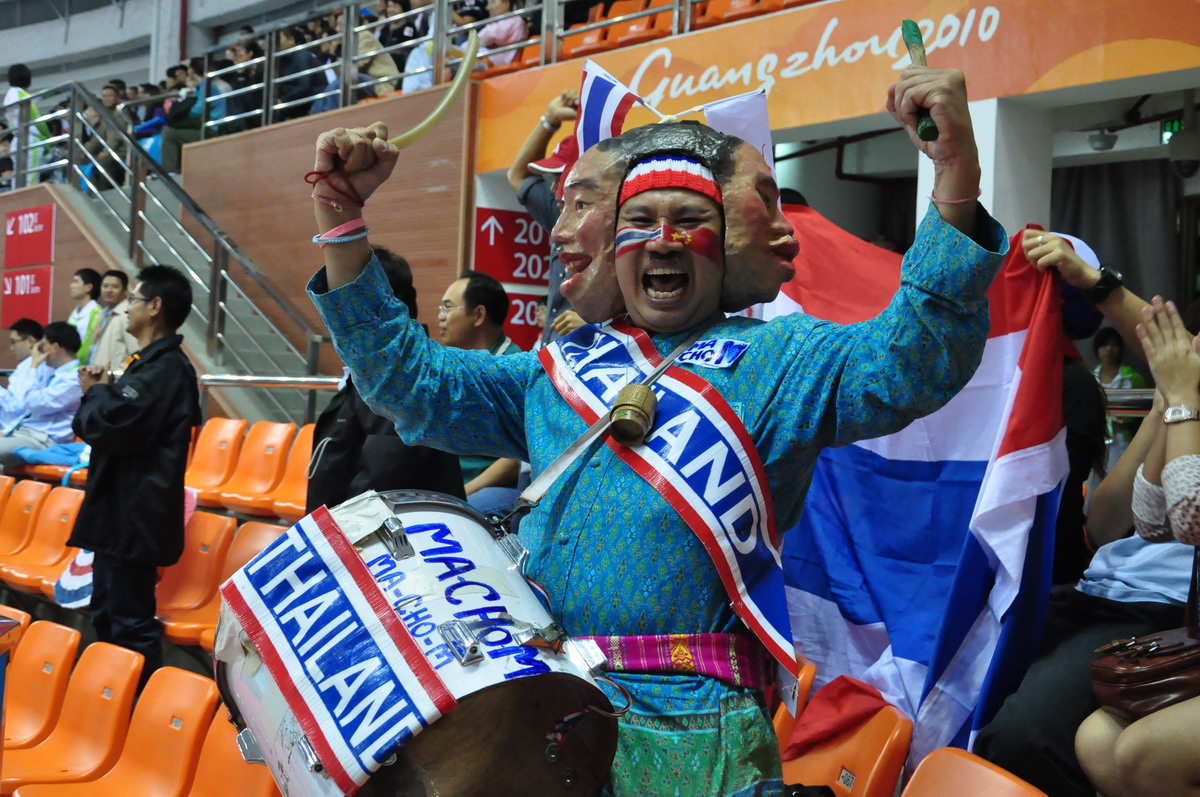 这位热情澎湃的大叔,曾连续三晚带领全场为中国队呐喊助威(陈洁冰/图)