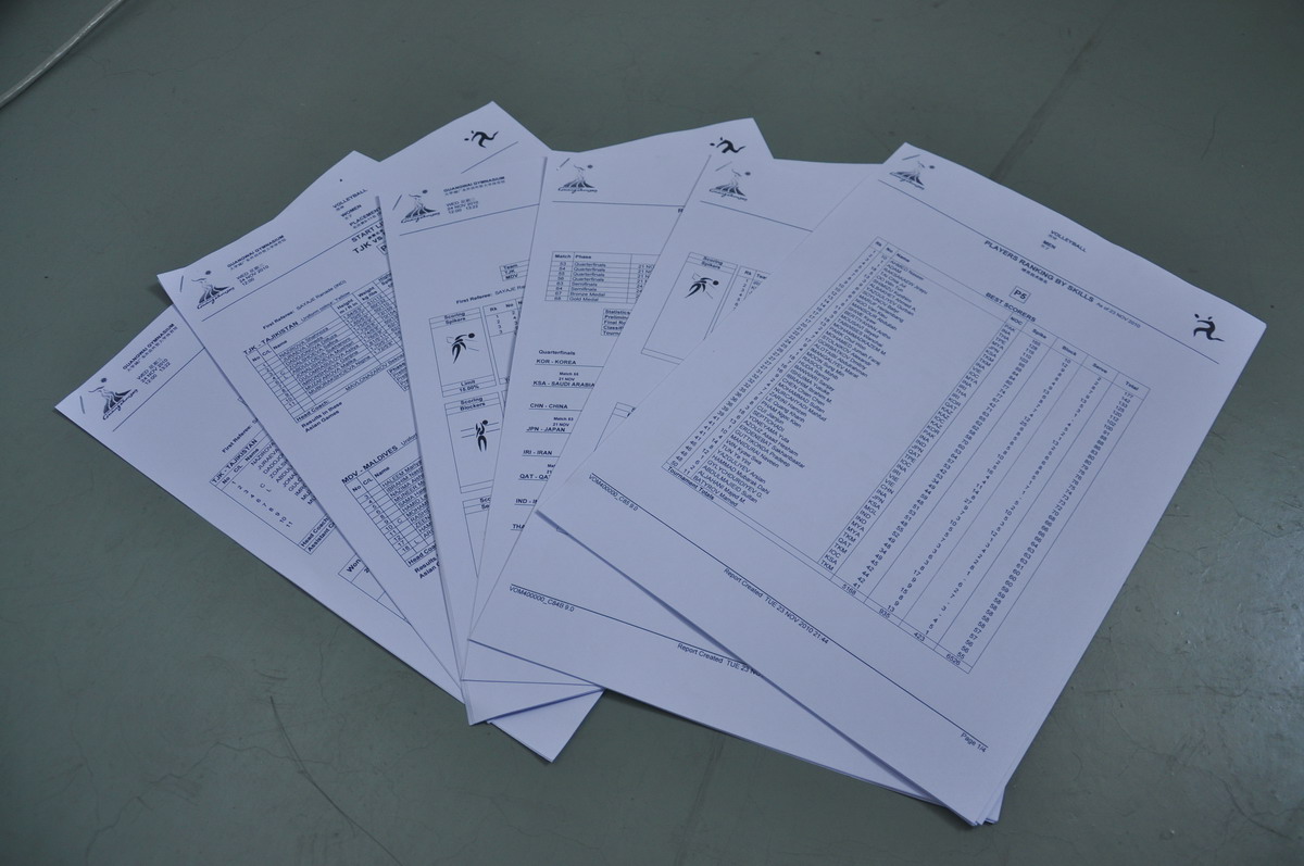 在每一场比赛后,成绩处理小组还要进行数据统计。“比如一场比赛(各队员)发球得了多少分,拦网得了多少分,失误有多少个,这些我们都要统计出来。”统计完之后,打印分发小组的志愿者就要马上工作,把比分信息等数据统计的内容打印分发到各个业务口区、媒体、运动员、教练等,让他们都能更好的了解比赛信息。“我们一天光打印大概就要消耗一万张纸。”陈平仲指出,打印分发的用纸数量多,平均一场比赛要两千张。“分到哪个业务口,分多少份,我们都会有记录的。”陈平仲介绍,打印分发是竞赛的需要,数量是按各业务口的需求来确定的,比赛前由专门的志愿者收集各方所需份数,再按统计出来的数量打印,每一场比赛所打印的纸张数量是每天更新的。陈平仲说:“有时候如果比赛很精彩,需要打印的数量就会更多。”
