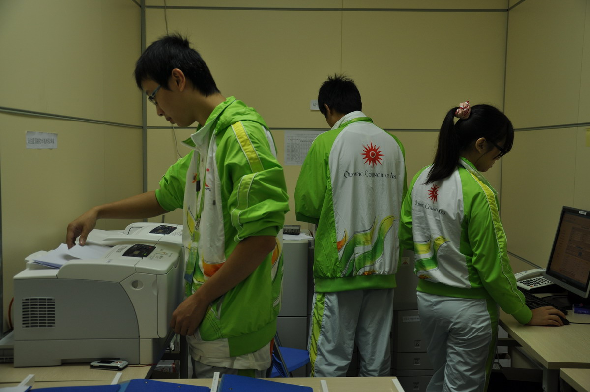 “成绩打印的内容不仅是我校场馆赛事的,中大和广药的比赛信息也会分到我们场馆来。”陈平仲还举了一个生动的例子来说明,“比如我是教练,我的队伍在广外打球,但是我想了解中大和广药两个场馆的比赛情况,这些信息如果由广外提供,就不用我去其他场馆拿了。”“虽然我校场馆比赛是从18日开始的,但是提供信息打印服务从亚运开幕就开始了。”陈平仲表示,负责成绩打印工作的志愿者们没有休息日,即使23号和26号是我校场馆的休息日,他们也要照常工作。“因为其他两个场馆的比赛还在进行,这也是信息技术业务口比较特殊的地方。”