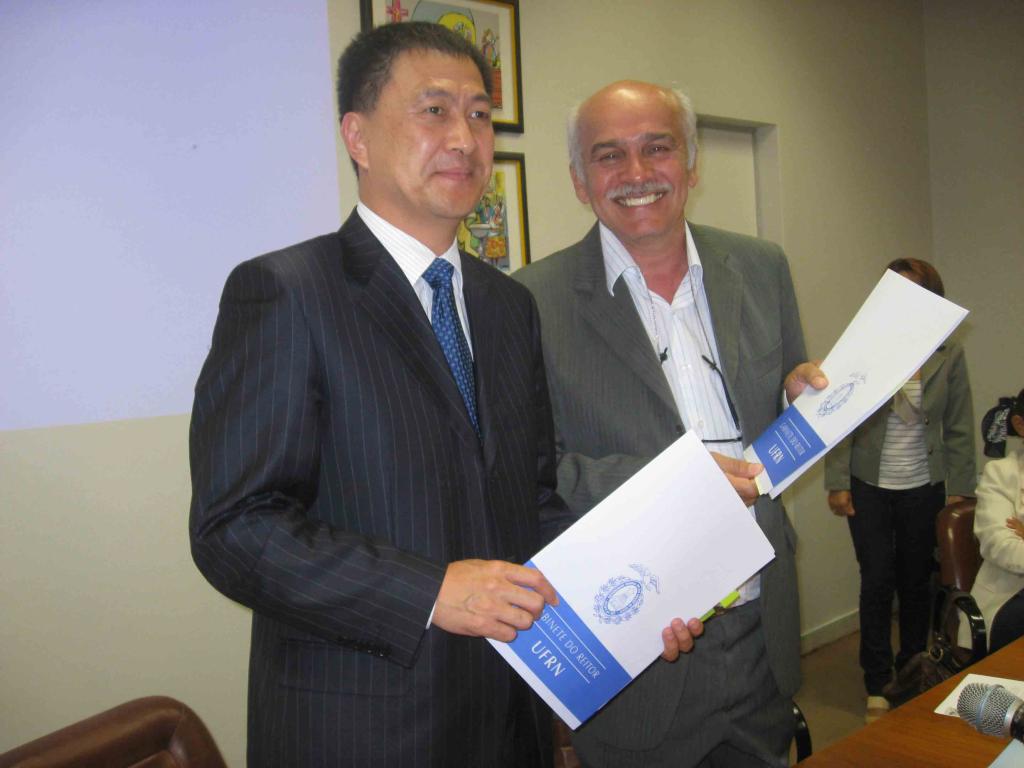 11月16日下午,隋广军访问了巴西北大河联邦大学。该校代理校长若泽·伊弗尼多·杜·雷果对隋广军一行的来访表示热烈的欢迎。在听取了巴西北大河联邦大学的情况介绍后,隋广军介绍了我校的历史发展、办学特色以及未来规划,他还重点介绍了我校的国际化办学特色、广东国际战略研究院的建设以及我校与巴西高校合作的情况等。随后,代表团与该校国际处、发展规划处、葡萄牙语系、外语系、公共政治系、社会学系以及现代文学研究院等单位的负责人进行了工作会谈。随后,隋广军与雷果共同签署了两校交流合作协议。双方期待着近期尽快派遣我校葡萄牙语专业学生到该校学习以及开展专题合作研究等。