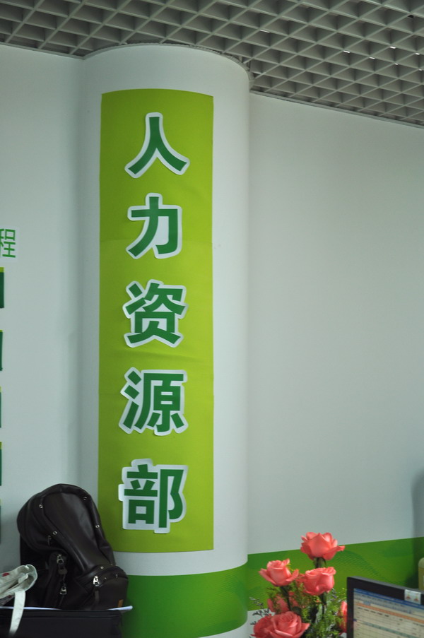 人力资源部办公室内的醒目大字(陈洁冰/图)
