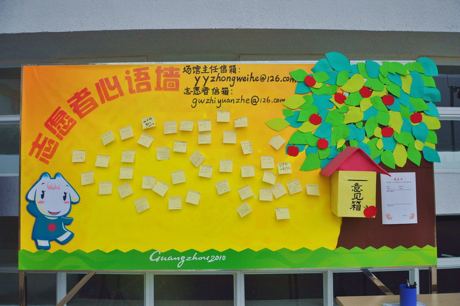 而何越晖则强调,志愿者之家不能单纯地发展为一个供志愿者们休憩娱乐的棋牌室。这只是志愿者之家的一个次要功能。志愿者之家的另重要功能应该是畅通信息反馈渠道。在志愿者之家内设有让志愿者可以在上面自由地表达心声和意见的心语墙,同时还设置了意见箱、意见卡。工作人员承诺,他们将当天收集和上报并争取当天解决。