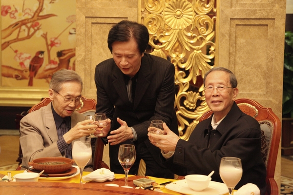 本网讯 11月10日晚上,78届校友黄华在地中海国际酒店设宴酬谢恩师。原广州对外贸易学院党委书记、院长石畏三及其夫人吴金芳教授,广东外语外贸大学原党委书记韩金波、方振富教授、刘端郎教授,黄华的夫人王小梅女士,我校校长仲伟合等出席了宴会。