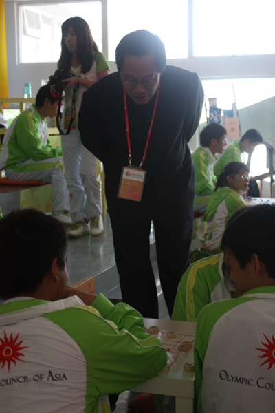 宋永忠观看志愿者下棋(李艳/图)