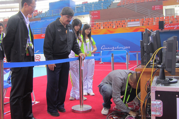 据悉,亚运排球联合会曾两次派技术官员到广外场馆进行视察指导,今天是第三次。经过多次视察,广外亚运团队从中发现问题,并落实方案解决,一切已经准备就绪,迎接亚运的到来。