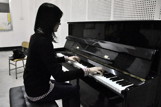 “移情别恋型”的英文学院09级王奕岚,七岁学习手风琴,后转入钢琴学习。已达业余九级水平的她,早在少年时代便去各地演出,曾于诗威德杯香港少年儿童钢琴赛中初露锋芒,获得七级组特等奖。现为校艺术团器乐队成员。