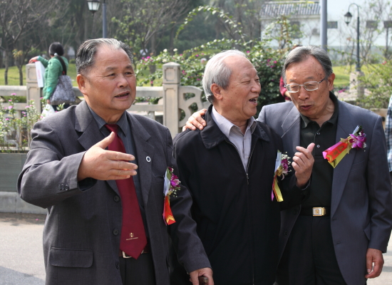 本网讯 11月6日下午,由1970级全体同学捐建的“九芳园”揭幕仪式在北校区隆重举行。出席揭幕仪式的有全体现任校领导,原广州外国语学院党委书记庄明英,原广州对外贸易学院党委书记、院长石畏三,广东外语外贸大学原党委书记韩金波,原广州外国语学院副院长黎导、谢联发等领导和嘉宾,专程回校参加“1970级入学40周年庆祝活动”及45周年校庆活动的老师和校友。校党委书记隋广军、校长仲伟合共同为“九芳园”揭幕。仲伟合发表了热情洋溢的讲话。
