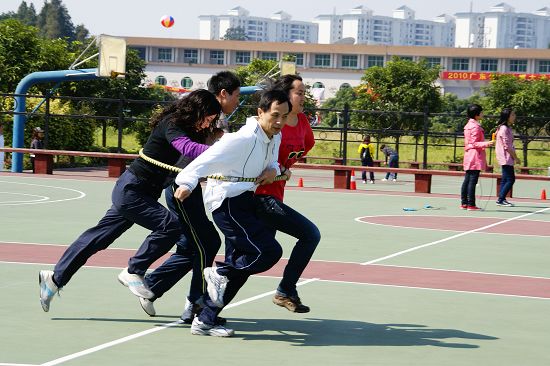 本网讯 10月29日,2010年广外教职工趣味运动会在北校篮球场欢乐举办。跳绳、投篮、障碍运球、投飞镖等五花八门的项目吸引了众多教职工一试身手,也吸引了不少学生、家属前来围观、助威。