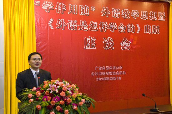 本网讯 10月27日下午,“学伴用随”外语教学思想暨《外语是怎样学会的》出版座谈会于北校区水上报告厅举行,会议由外语教学与研究出版社副社长徐建中主持。