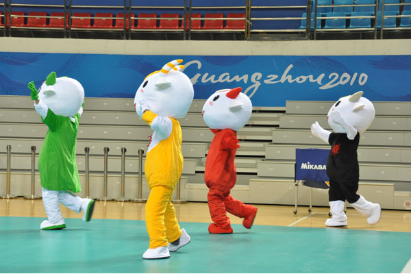 广外“国魅”啦啦队的表演为此次坐式排球联调测试赛增添了不少光彩。拉拉队员们陆续表演了富有异域风情的印度舞、狂放热辣的牛仔舞和活力优雅的排球操,表演过程引来阵阵喝彩。另外,亚运吉祥物“祥和如意乐羊羊”也都在比赛前后和局间来到场上向观众打招呼问好。