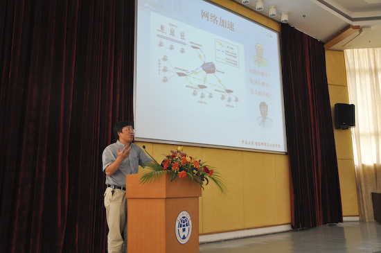 本网讯 10月15日14:30,来自中南大学信息科学与工程学院的教授、博士生导师王建新在南校区八角楼为广大师生讲解了关于“网络加速”的相关知识。学校人事处副调研员杨戈锋、思科信息学院副院长蒋盛益以及思科信息学院相关系领导出席了本次讲座。会议由蒋盛益主持。