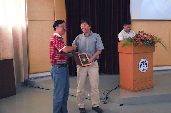 讲座开始,首先由主持人介绍了王建新教授的主要成就等情况,之后杨戈锋向王建新教授赠送了礼物。
