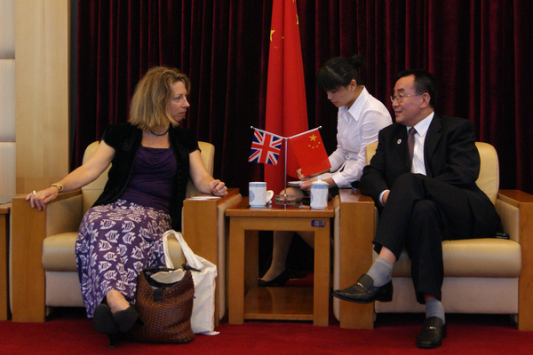 本网讯 10月11日下午,英国西敏斯特大学代表团访问我校。我校副校长顾也力在北校迎宾厅会见了来访的副校长米兹卡古斯考斯卡。国际学院院长陈林汉、副院长刘明,国际交流处副处长梁洁及MBA中心副主任吴易明等陪同会见。双方交流了在教学和科研两方面的合作意向,期待将翻译与翻译语言和媒体与设计两大专业定为两校合作的新突破点。