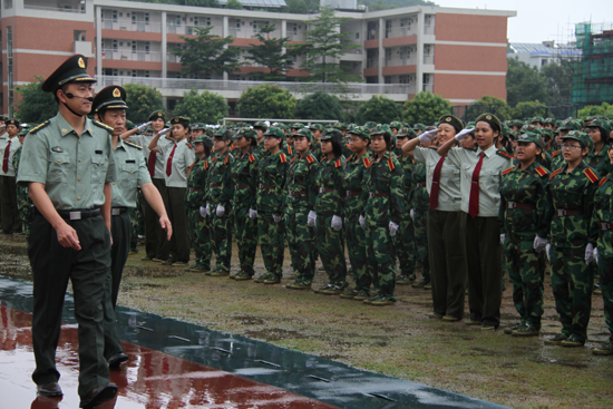 隋广军赞扬了新生们的雨中汇演,“尽管训练时间短,但他们进步快,在最后的演出中展现了他们的风采和精神面貌,这是90后青年独有的风貌!”他寄语新生继续保持吃苦耐劳的精神和互相帮助的团队精神,在以后的岁月中保持昂扬向上的精神。许国彬在赞许汇报表演的同时,还对广州警备区教导大队的精干之师为我校军训提供的帮助表示感谢,他也勉励同学们继续艰苦奋斗、努力学习,践行“明德尚行,学贯中西”的校训,争取更大的光荣。