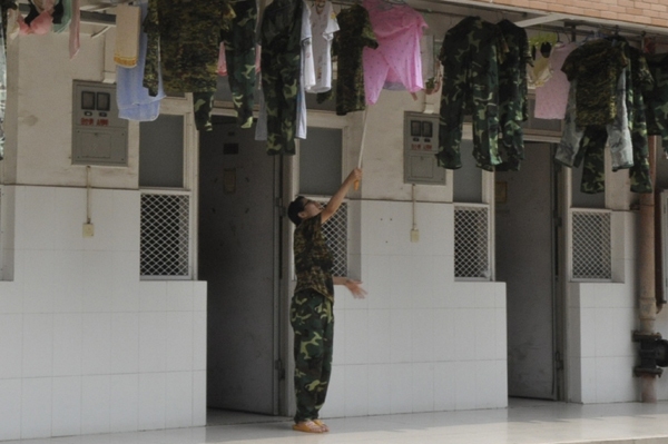 洗衣服、晾衣服……逐步适应新的生活