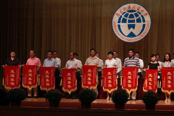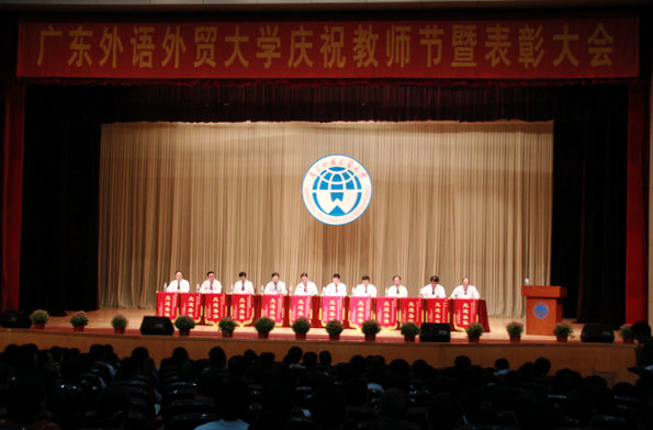 本网讯 9月9日下午,为迎接第26个教师节,我校在云山会堂隆重举行了广东外语外贸大学庆祝教师节暨表彰大会。我校党委书记隋广军,校长仲伟合,党委副书记陈建平、许国彬、金耀观,副校长董小麟、顾也力、陈子锐、石佑启,党委常委卢景辉在主席台就坐,全体教职工出席本次大会。会上,隋广军传达了全省教育工作会议精神,仲伟合发表了教师节主题讲话,大会由陈建平主持。