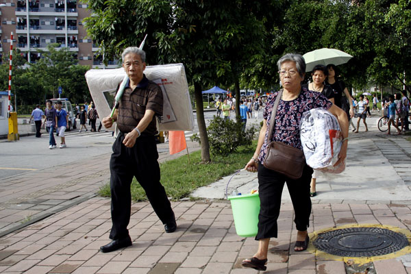 在中环新生接待进口处,记者看到十多名亲友提着大包小袋,拥着一名新生走向签到区。大到洗衣机、电脑、穿衣镜,小到干燥剂、毛绒玩具、零食等,家里能搬动的东西,几乎都被这位90后王同学一股脑地带到了学校。十多位亲友拥着一位大学新生进了宿舍,这壮观场面让众生十分感慨。庞大的“送学队伍”还带行李多达十多包。