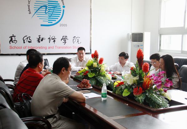 隋广军等一行在南校区分别听取了经贸学院、管理学院和思科信息学院的工作汇报,与各学院作了简短的交流讨论。仲伟合在校办主任李云明等陪同下,在北校区对翻译学院以及英文学院进行查看。
