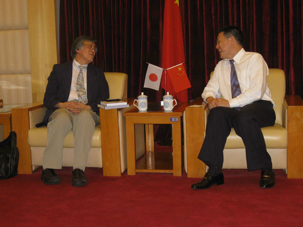 此外,塚本庆一在会谈前还与我校高翻学院及东语学院的领导和教师进行座谈,并为我校日语专业的学生开有关中日翻译的讲座。