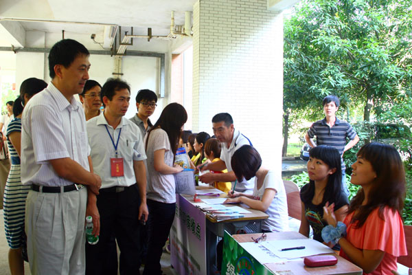 隋广军巡视了各个学院的迎新情况,并慰问各个学院的老师和迎新志愿者,他还特地询问了今年新疆生、贫困生和灾区生的接待情况。对于今年的迎新工作,隋广军表示:“今年的迎新工作组织有条不紊,老师和同学都十分热情。对于生活困难、少数民族学生和受灾学生,学校都将给予关心和物质上的帮助,希望他们感受到广外大家庭的温暖。”