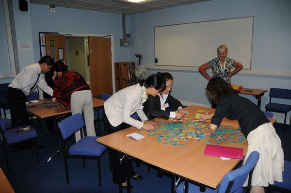考文垂大学(Coventry University) 始建于1843年,是一所具有远见卓识的大学。2002 年,考文垂大学商学院、国际研究与法学院合并成立考文垂商学院。该学院是目前欧洲最大的商学院之一。研修团一行于当地时间8月18日—20日在该校商学院进行了为期3天的学习,聆听了商学院副院长Dr.Don Finlay主讲的Adding Value and Employability,Dr.Paul Jackson 主讲的Leadership and Culture以及Dr.Harjit Sekhon主讲的Trust and Financial Service 的精彩课程。考文垂第一天的课程由Marie Hardie女士引导学员做拼积木的管理游戏,通过十分钟的课前热身,使学生领悟到一名合格的管理人员所必需的能力。商学院副院长Dr.Don Finlay教授从品牌管理和质量控制,分析消费者决策模型,阐明了在生产者和消费者之间如何建立信任关系及如何创造价值,而Paul Jackson教授从东西方不同的文化背景,讲述了领导力的形成并重点探讨了如何培养跨文化领导力,教授们的精彩讲授从不同视角给了同学们以全新的启发。
