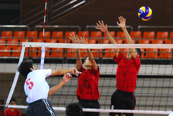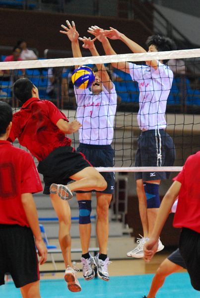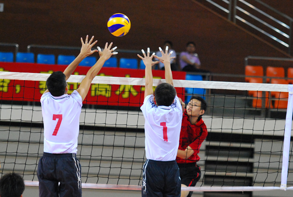 上一战对台山一中的猛烈进攻毫无反击之力的化州一中再一次面对强敌,加强防守之后,却暴露了自己进攻能力严重不足的缺点。第一局开始三分钟,两队都表现平平,但因实力的差距,台山培英以8:5的战绩领先进入第一次技术暂停。之后的时间,化州一中展现了良好的防守能力,台山培英站在四号位的6号队员李润斌多次跃起网前猛扣,化州一中两位防守队员死守二号位,准确判断对方击球方向,成功拦截三记扣球;在最后一击时,李润斌的跃起动作已略显缓慢,随着化州一中两位队员的最后一次伸手拦截,排球即将落入对方中场,台山培英的队员还来不及反应,球应声落地,全场掌声雷动。