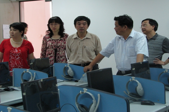 会后,在何勇斌、庄典洲等陪同下,来访人员参观了大学同声传译室、多功能语音室、大学图书馆和公开学院夏茅校区。