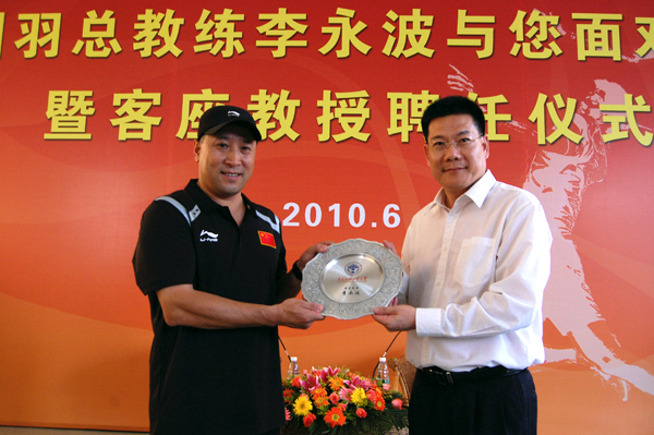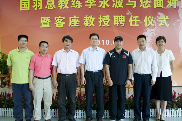本网讯 6月23日下午,国羽总教练李永波受聘为我校客座教授,并在南校区八角楼,与师生进行面对面交流。会上,李永波与我校师生分享了自己羽毛球生涯中的精彩故事,阐述了羽毛球带给人的健康与快乐。我校党委书记隋广军、校长仲伟合、副校长陈子锐、体育部主任林少娜等出席了本次讲座。