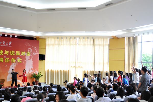 “打羽毛球对颈椎好,它是最具艺术造型的运动”,李永波在访谈中向观众极力推广羽毛球,同时也希望我校将来能为他所建的国际羽毛球学校输送外语人才。最后,他给在场观众一展身手,积极互动,献上了12个亲笔签名的羽毛球。