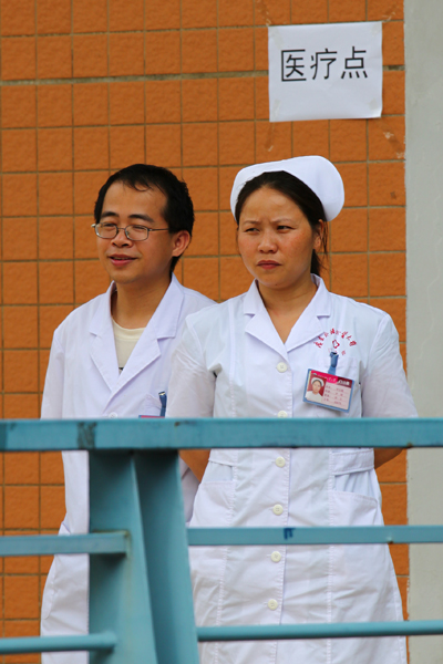 医疗点的医务人员时刻准备为来宾服务