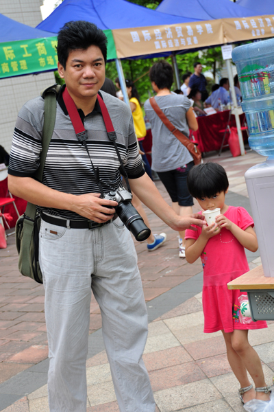 有的家长为了不错过任何信息,甚至出动相机和DV机把每一个场景都详细记录下来。广州本地的高先生和妻子也带着相机在校园内不停拍照,并向在场工作人员以及老师询问相关专业信息,然而他们的孩子并不是应届考生,而是正在补课的“准高考生”。为了能够尽早了解专业信息,为孩子的高考铺路,他们特地提早一年前来“刺探军情”。