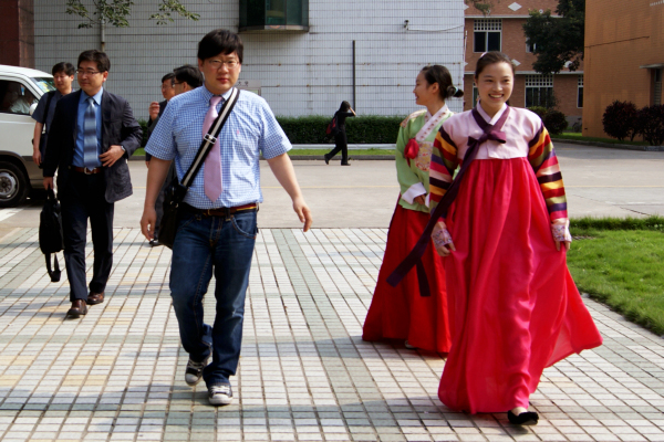 东语学子身着朝鲜服饰迎接大真大学到访一行