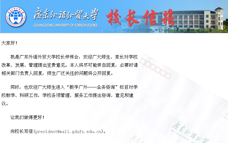 广外首设“校长信箱”