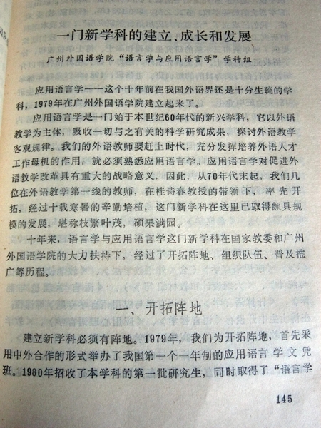 何自然、桂诗春教授于1989年为《广东高校十年教学改革与研究》撰写的文章(翻拍)
