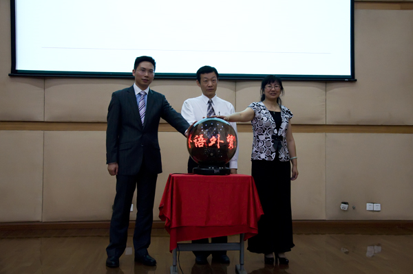 赵烨随后对职业辅导月系列活动进行简要介绍。本届辅导月由三个模块组成,分别为体验篇、分享篇和实战篇,通过企业参观、专题讲座、实习招聘等方式让学生进行职业辅导。在一段关于往届活动回顾的视频之后,许国彬、赵烨和肖国良同时按下启动球按钮,宣布第三届职业辅导月正式启动。