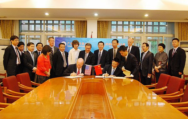 在会见及签字仪式前,乔治福克斯大学代表团还与我校第二期中层干部赴美培训班的学员进行座谈,回顾了2009年暑期我校人员在美国培训的情况。双方均表示要珍惜彼此的友好情谊,共同促进两校的深入合作与交流。
