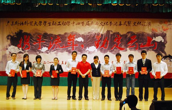 本网讯 5月8日下午,“携手流年,勤定云山”广外学生勤工助学中心首届云山文化节闭幕式曁文艺汇演在北校区六教报告厅举行。期间还进行了“勤工之星”的颁奖和新老管理层的交接仪式,各个职能部门及实体以一场精彩的视觉与听觉盛宴,为学生勤工助学中心首届云山文化节画上了圆满的句号。