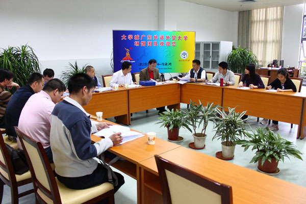 本网讯 4月26日下午3:00,应广外亚运场馆团队邀请,场馆安保业务口全体人员来到南校区大会堂A区103室广外体育馆团队办公区召开安保团队对接暨第一次全体会议。会议由番禺区公安分局国保大队政委、广外亚运团队安保副主任黄炳南主持,安保经理郭锦荣、证件经理李跃龙、证件副经理黎健全、新闻发言人王继锋、安检经理陈淦民、曾汝德,及交通经理周知、场馆保障经理王鲁江、综合事务经理肖锋等出席了会议。