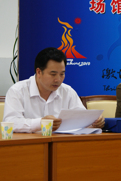 会议上,黄炳南首先介绍了与会人员,然后对亚运场馆安保工作初步方案进行了总体介绍及具体说明,对于场馆内指挥部的设立、安保演练、兴奋剂检测、出入口更改、验证工作、消防工作以及雷雨天气的安全工作都做了详细介绍。