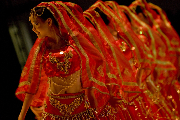 领略印度风情,新闻学院、法学院和信息学院为我们揭开这个神秘国度的面纱。新闻学院《提拉那》独舞,只见舞者双手合十,魅惑的眼神与眉间的朱砂一点瞬间勾起万千风情。在奔放激情的音乐下,浑身散发着异域风情的舞者将印度舞蹈的妩媚妖娆表现得淋漓尽致。法学院的《魅惑》,那妖艳的眼神,勾人心魂的舞姿,每一个动作都是红色的魅惑,令人浮想联翩。信息学院的印度舞蹈《JAI HO》出场,金光耀眼的服装夺人眼球。在节奏感极强的伴乐下,舞者扭动着她们细软的蛮腰,宛如金色的丝绸摇曳。在观众的欢呼声中,身着印度装的男子迈着动感的舞步,阳刚之气十足,与印度女子的柔美舞姿相得益彰。