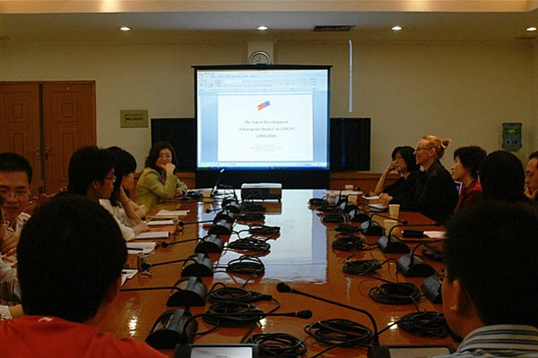 随后,蔡红主持评估会并作出《广外欧洲研究的最新发展(2008-2010)》的专题报告。她从我校的支持与投入、中心管理、欧洲学硕士点、教学科研团队、研究成果与项目申报、资讯服务、政府媒体关系、国际交流八个层面全方位地展示了欧盟项目结项后两年来,我校欧洲研究可持续发展的进展与取得的成果。她也呼吁欧盟持续性支持我校的欧洲研究,并就我校期望欧盟资助的具体内容提出建议。蕾玛丽女士还与在场师生进行长时间的深入访谈,我校首届欧洲学硕士研究生发言踊跃,会谈气氛友好而活跃。
